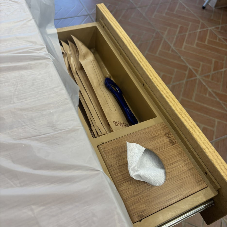 테이블 옆 수저는