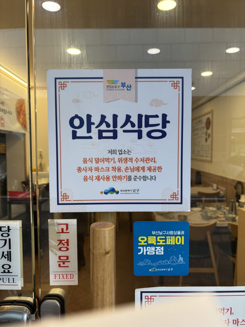 '안심식당' 스티커가 부착되어 있네요